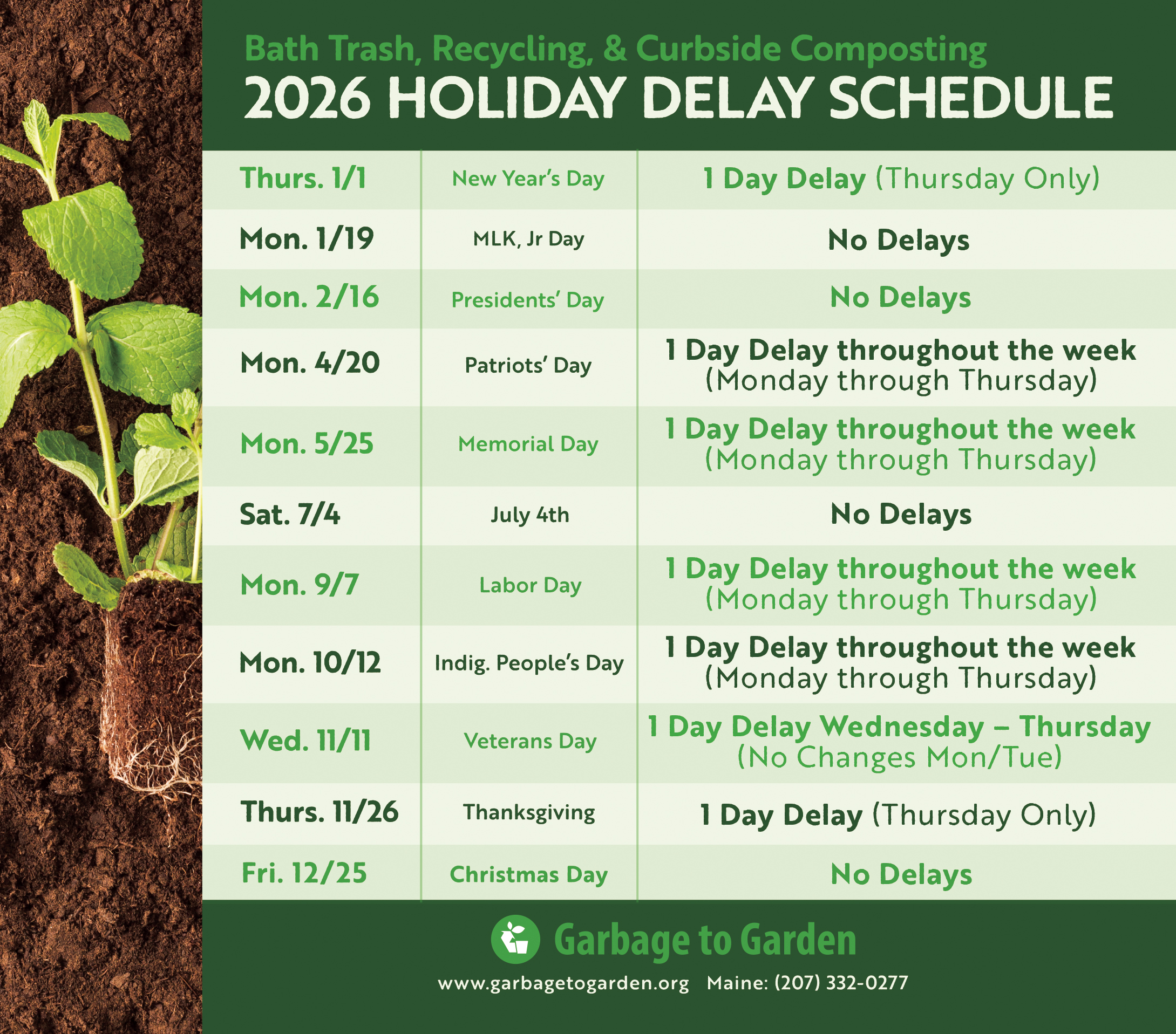 All days following a holiday will each be delayed by one day. Normal service will resume the following Monday.